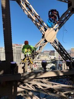 Rappelling and Service team. It took the team roughly two months of strenuous days rappelling and climbing the tower to complete the light show.